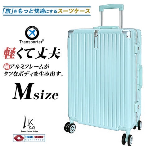 スーツケース キャリーケース キャリーバッグ アルミフレーム M サイズ 3~5泊 大容量 静音 旅行 ビジネス 出張 修学旅行 国内旅行 海外旅行 ハードケース Transporter 【lk04】ミントブルー トラベルソムリエ t-s1