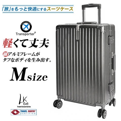 スーツケース キャリーケース キャリーバッグ アルミフレーム M サイズ 3~5泊 大容量 静音 旅行 ビジネス 出張 修学旅行 国内旅行 海外旅行 ハードケース Transporter 【lk04】ガンメタ トラベルソムリエ t-s1