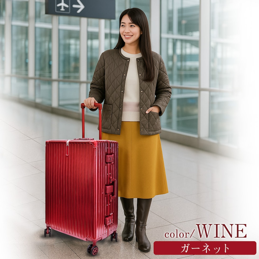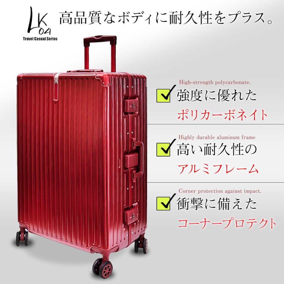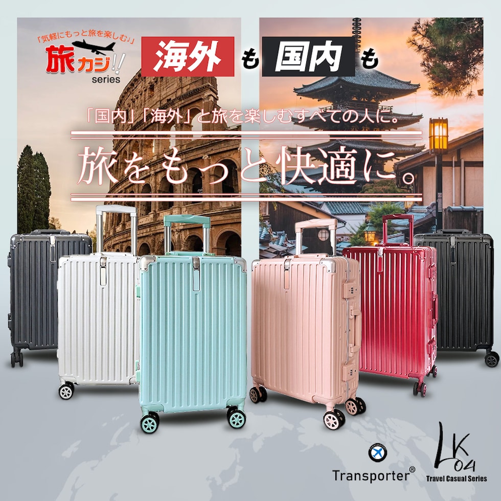 スーツケース キャリーケース キャリーバッグ アルミフレーム M サイズ 3~5泊 大容量 静音 旅行 ビジネス 出張 修学旅行 国内旅行 海外旅行 ハードケース Transporter 【lk04】ガーネット トラベルソムリエ t-s1