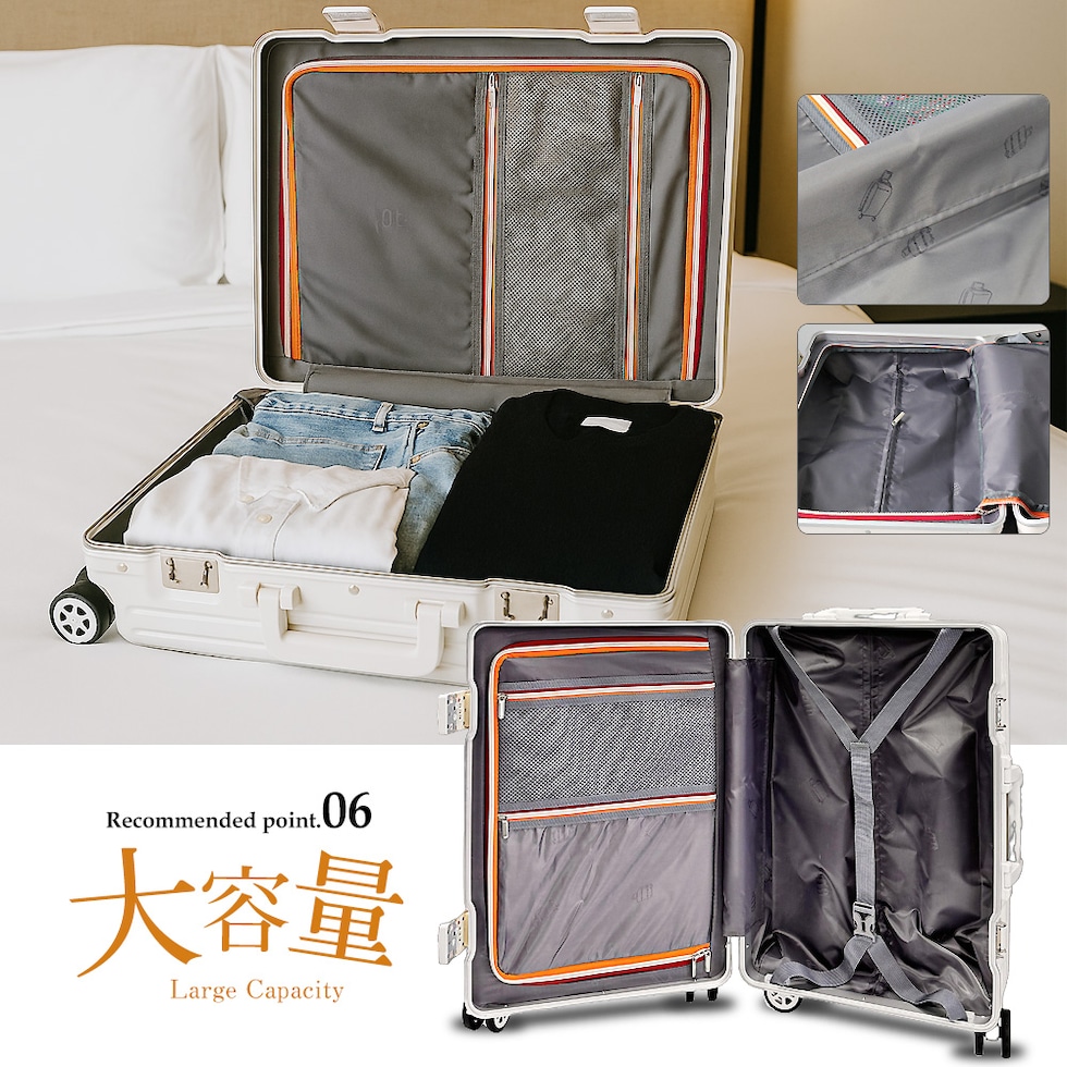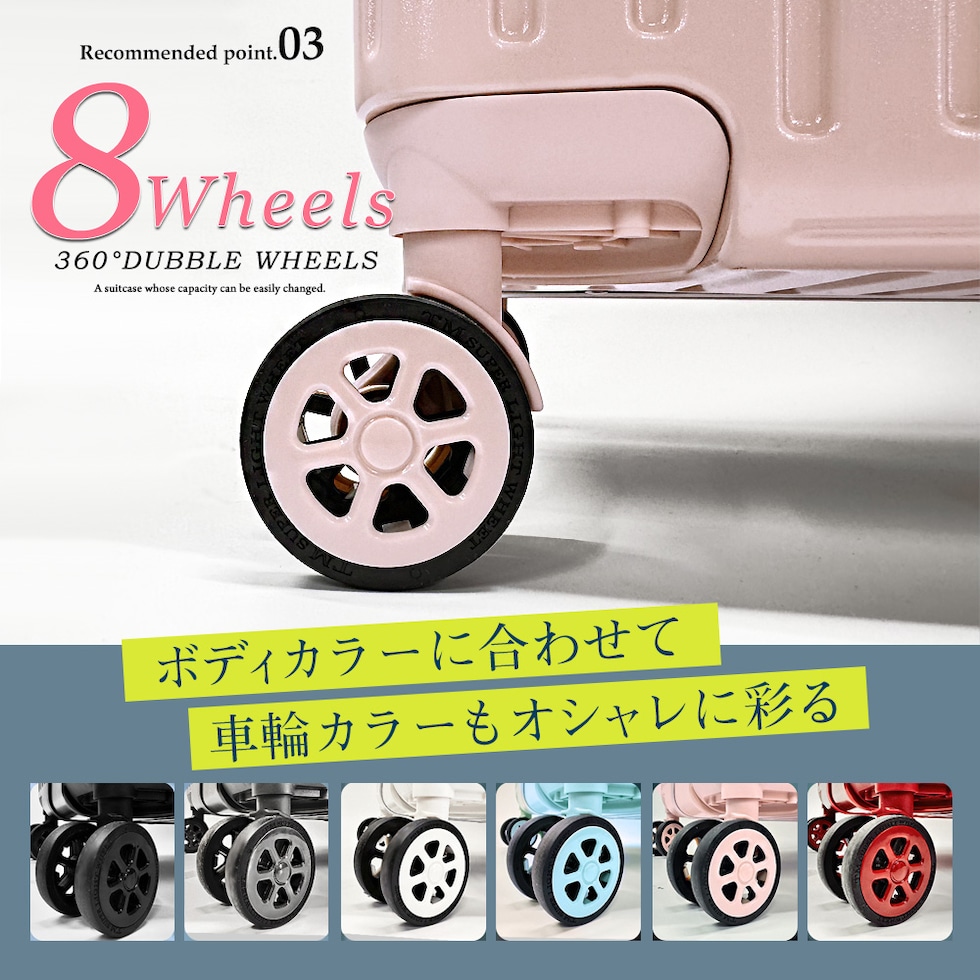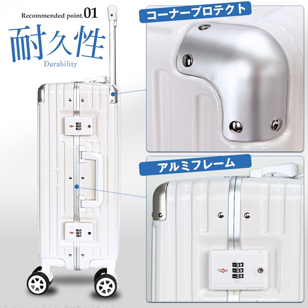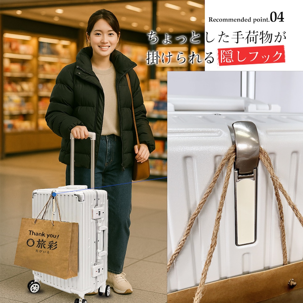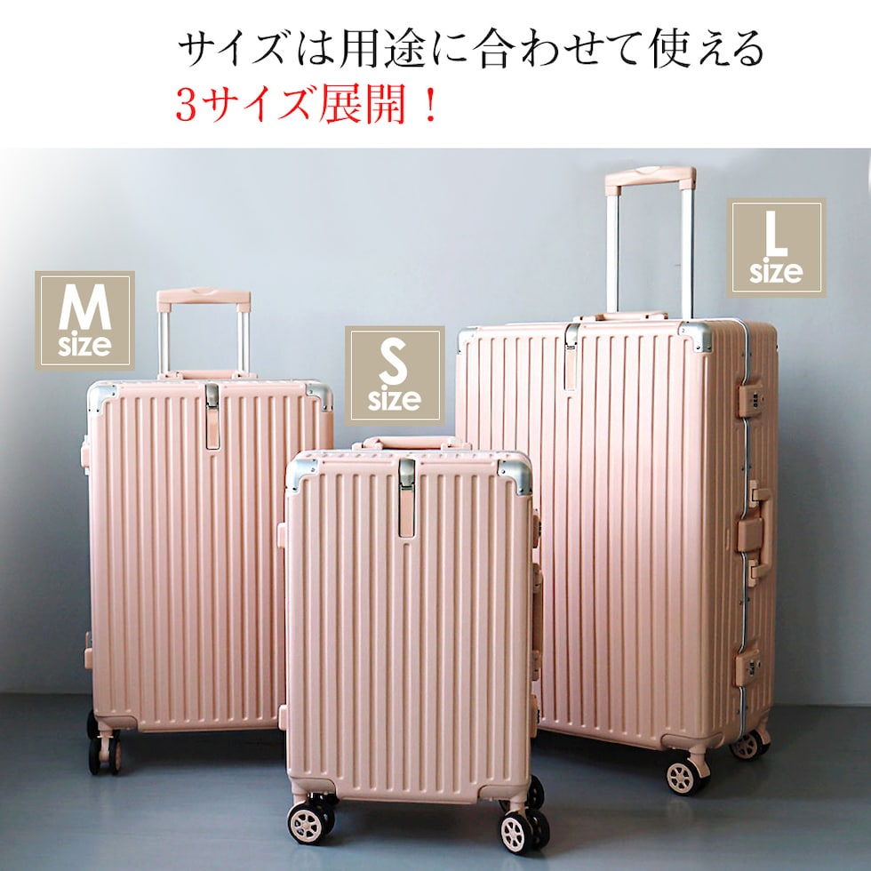 強度とデザイン性を両立したプレミアムモデル。 「軽量・高い耐久性!旅をもっと快適にしてくれるスーツケース」 旅行やお出かけを、もっと楽しく、もっと自分らしく。 そんな想いから生まれたスーツケースです。 幅広い世代の方や、またビジネスシーンにもお使い頂けるよう、 スタイリッシュで都会的な大人カラー3色+カラフルで可愛らしいパステルカラーの全6色展開! 日常の移動にもぴったりな、機能性とデザイン性を兼ね備えたスーツケースをお届けします。 ■ボディは軽量かつ強度に優れたポリカーボネイト素材を採用。 耐衝撃性に優れ、傷がつきにくく、美しい光沢感が長持ちします。 日常の移動から海外旅行まで、安心してお使いいただけます。 ■高い耐久性のアルミフレーム構造 ボディを支えるのは、頑丈なアルミフレーム。 デザイン性を損なわないように細めのアルミフレームを採用しております。 ファスナータイプのスーツケースよりも強度を増した仕様になっております。 ■衝撃に備えたコーナープロテクト 衝撃を受けやすいコーナー部には、コーナープロテクトを施し、同時に高級感のあるデザイン性も高めた仕上がりに。 ■超軽量ボディで持ち運びも楽 このスーツケースの魅力は、旅やお出かけに必要な耐久性を担保しつつ、 女性の方や年配の方でも使い易いように軽量化を実現いたしました。 ■360°回転するダブルホイールを採用 大きめの車輪でスムーズな走行を実現。静音性にも優れ、移動時のストレスを軽減します。 またボディカラーに合わせた車輪カラーもオシャレ! ■ちょっとした手荷物をサクッとかけられる便利な手荷物フック付き! お土産の紙袋を掛けておくのに重宝します。 ■アメリカ圏の旅行に対応したTSAロック 3桁のダイヤルロックなので、鍵の管理は不要です。 ■大容量収納&整理しやすい内装 内装にも拘りを。イラスト刺繍が入った内生地と、アクセントカラーのファスナーが旅のわくわく感を演出。 小分けポケットや荷崩れ防止ベルトなど、荷物の整理整頓をサポートする機能も充実。 短期旅行や出張、長期休暇などにも対応出来るS/M/Lの3サイズ展開。用途に合わせて最適なサイズをお選びください。 |