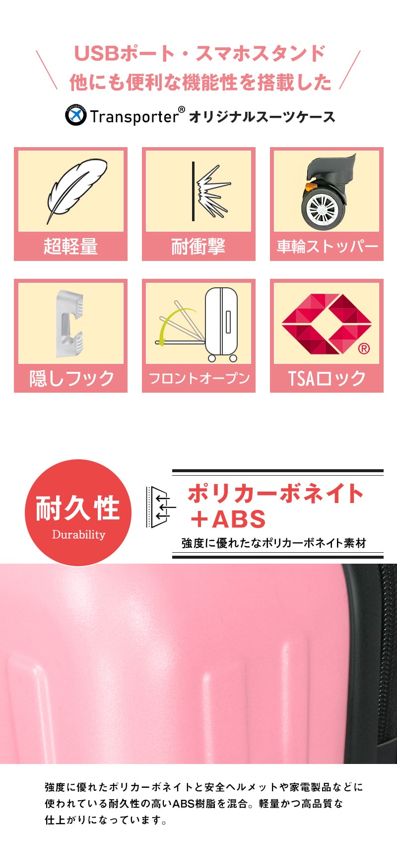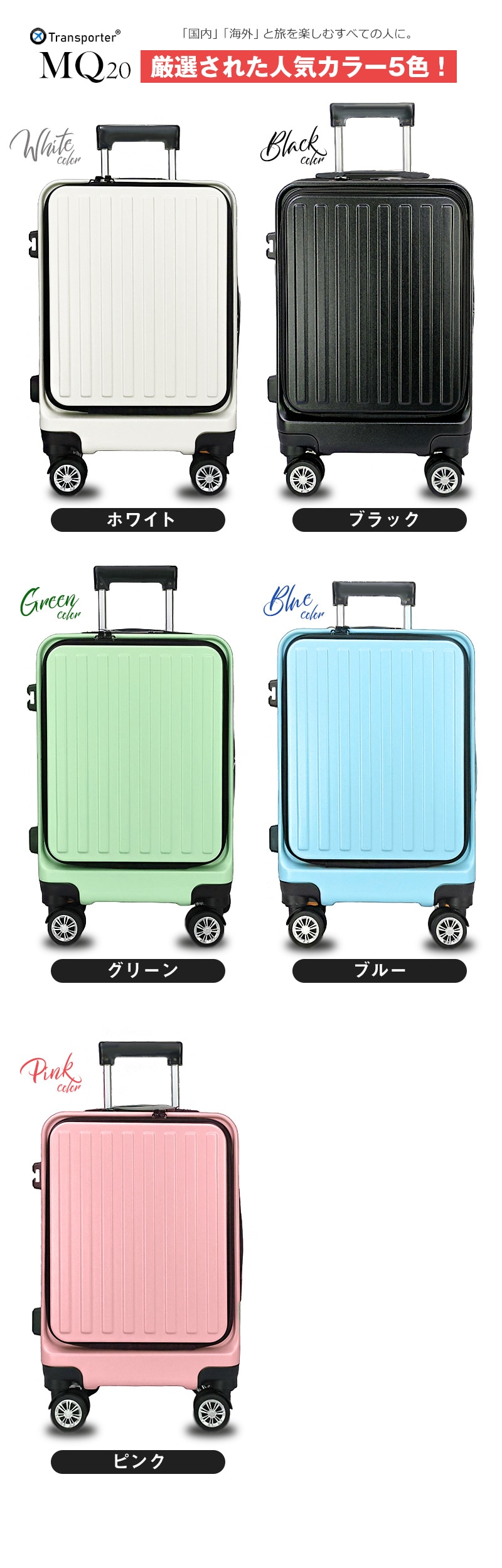 スーツケース キャリーケース キャリーバッグ 機内持ち込み フロントオープン S サイズ 34L 1?3泊 TSAロック usbポート付き 車輪ストッパー 静音 旅行 ビジネス 出張 修学旅行 国内旅行 海外旅行 Transporter 【MQ20】 ピンク トラベルソムリエ t-s1