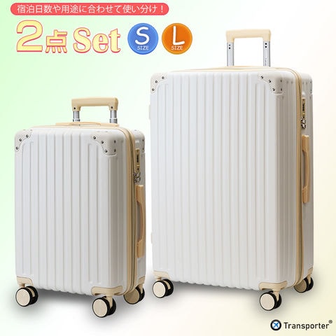 スーツケース 2点セット S+Lサイズ 軽量 拡張機能 TSAロック付き ハードキャリーケース 機内持ち込み対応 大容量 海外 国内 旅行 人気モデル 女子旅 Transporter【osn-2setb】 アイボリー×ホワイト トラベルソムリエ t-set5