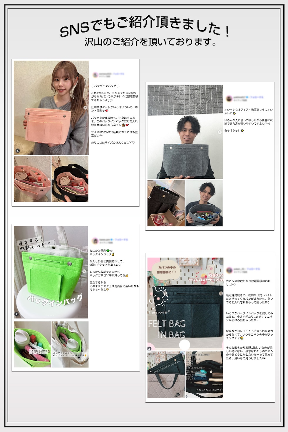 上質で厚手のフェルト生地を素材に使った全16カラーのバッグインバッグ。