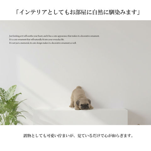 ペットメモリアルフィギュアです。 まるで「今もそばにいてくれる」ような、 優しく寄り添う表情とリアルな造形にこだわり、 ペット仏壇・ペット供養スペースに自然に馴染むデザインに仕上げました。 ■ ペット仏壇と合わせて飾れるサイズ感 コンパクト設計のため、 ペット仏壇・メモリアルボックス・棚・チェストの上など 限られたスペースにも無理なく設置可能。 ■ 置物としても可愛いメモリアルオブジェ 供養用品としてだけでなく、 インテリアとしても違和感のないデザインなので、 リビングや寝室に飾ってもやさしい雰囲気を保ちます。 ■ ペットロスの心にそっと寄り添う 写真だけでは寂しいと感じる方や、 「触れられる存在が欲しい」という想いに応える 手元供養・ペットロス対策グッズとしておすすめです。 ■ 犬用・猫用をご用意 ワンちゃん・ネコちゃん、 それぞれのイメージに合わせたデザインをご用意。 ※猫用メモリアルフィギュアもございます。 ■ 一部はドアストッパーとしても使用可能 重みと安定感のある設計のため、 パグ(6A)・フレンチブルドッグ(6B)・シュナウザー(6D)はドアストッパーとしてもご使用いただけます。 普段は、ペットメモリアルフィギュア(置物)として飾りながら、 来客時や換気の際など、 さりげなく実用性も兼ね備えたペット供養グッズです。 ※設置場所や床材・ドアの形状によって使用感は異なります。 ■手作り塗装の為、多少の色ムラがある場合がございます。製品の特質としてご理解ください。 | |