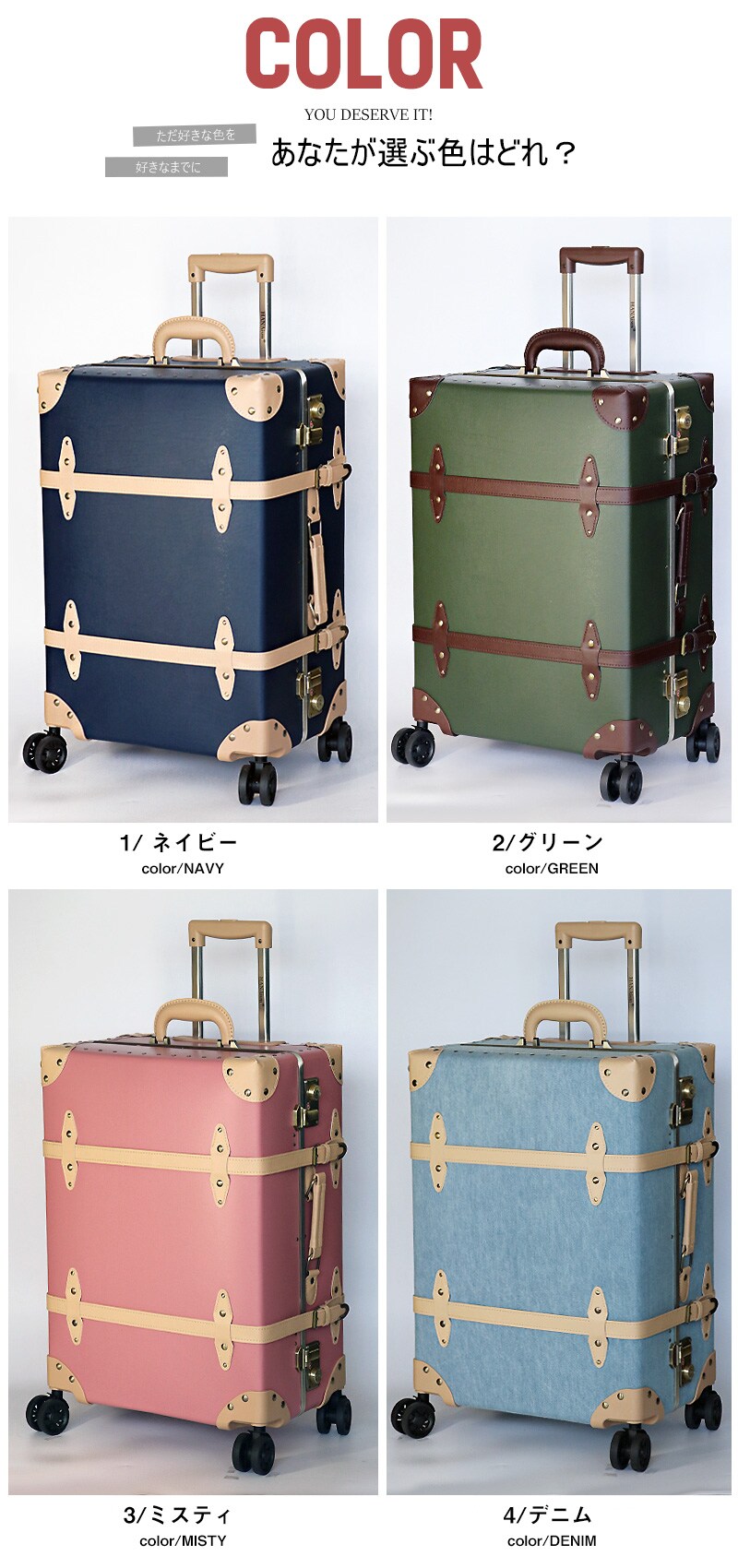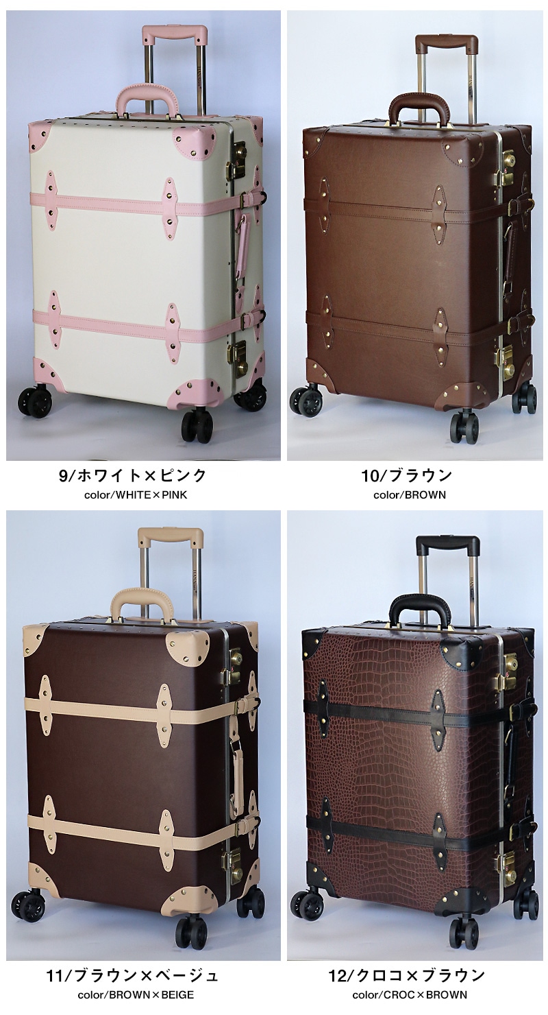 アンティークな雰囲気と現代的な使いやすさを融合させた、 旅行やお出かけの楽しさをもっと特別なものにするため。 HANAism「視線を集める収納上手なトランクキャリー」が誕生。 ■クラシックなデザインと実用性を兼ね備えたトランク 【アルミフレームを採用し耐久性を向上】 このトランクキャリーは、ヴィンテージ感あふれるアンティークデザインが特徴でありながら、従来モデルよりも強度を向上させた上位機種です。 アルミフレームを採用し、耐久性を高めることで、旅の途中でも大切な荷物をしっかり守ります。 さらに、従来のトランクでは収納が難しかった蓋部分にもスペースを確保し、より多くの荷物を整理しやすい構造になりました。 【世界基準のTSAロックを搭載】 アメリカ領土への渡航時、手荷物または受入れ荷物は。一切の施錠をしないのが原則となっております。 施錠された荷物については鍵機構を破壊する事が認められており、破壊されたり盗難にあっても補償は一切ないのが現状です。 そこで便利な機能がTSAロック。このロック機能を使用すれば荷物を施錠して航空会社に預け入れしていただけます。 万が一、荷物の検査が必要になった場合は、専用のスペシャルツールで解錠・検査しますので、鍵機構を破壊される事がありません。荷物を施錠せずに渡すというリスクを負う事なく、安心して海外にでることができるロック機能がTSAロックです。 【シーンによって長さを使い分け。多段階キャリーバー】 スーツケースで多用する部分だからこそ拘りを。親指でプッシュするだけの、簡単操作で簡単にキャリーバーを引出す事が出来るので、片手がふさがった状態でもストレスなくお使い頂けます。 また交通機関をご利用するなどシーンに合わせて多段階調節が出来るのもうれしいですね。 またキャリーバーにはブランドロゴが刻まれ、細部までこだわり抜かれたキャリーです。 【清潔感のある内装デザイン】 内装にはストライプ柄をあしらい、開けた瞬間にも可愛らしさを演出。 荷崩れ防止ベルトやデザイン性の高いベルトを採用し、使いやすさも向上させています。 留め具は引っかけるタイプになっているので、仕切り自体を取り外す事も可能です。 【長く愛用して頂ける素材】 表面素材は、撥水性に優れ汚れに強い。PP+PVCを採用。※カラー4/デニムのみ、デニム生地となります。 またダメージの受けやすい四隅には、デザイン性のあるコーナープロテクトを。 荷物を開け閉めする際に地面に当たる部分に金具を施す事で、長く綺麗にスーツケースの状態を保つことができます。 【スムーズに動く。安定のダブルホイール】 スーツケースを倒さずに水平移動ができ、キレイにまとめた荷物の片寄りを軽減。安定したダブルホイールは360°回転してくれるので、人混みの中でもスムーズな動きで快適な旅がお楽しみいただけます。 国際線・国内線(100席以上)の機内に持ち込むことができる 幅55cm×高さ40cm×奥行25cm以内に 適合したサイズとなっております。 搭乗時や到着後の移動がスムーズにでき、 荷物を預けることがちょっと不安 と感じる方におすすめです。 ※LCC・MCCを除く航空会社で機内持ち込みしていただけます。 また路線、飛行機の種類により機内に持ち込む事が出来ない場合がございますので、予めご了承願います。 |