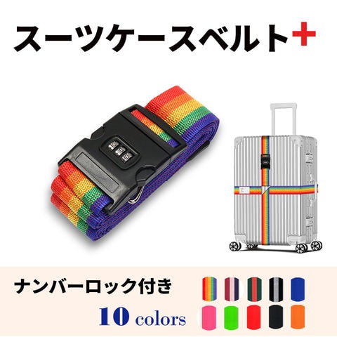 スーツケースベルト キャリーバッグベルト十字型 ロックあり ロックなし クロス おしゃれ 目立つ メール便送料無料 虹色 荷崩れ防止 見つけやすい 旅行用品 海外旅行 【suitcasebelt02】ナンバーロックあり・1/レインボー