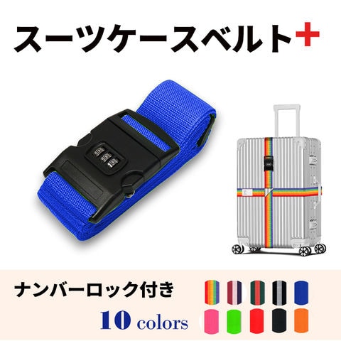 スーツケースベルト キャリーバッグベルト十字型 ロックあり ロックなし クロス おしゃれ 目立つ メール便送料無料 虹色 荷崩れ防止 見つけやすい 旅行用品 海外旅行 【suitcasebelt02】ナンバーロックあり・5/ブルー