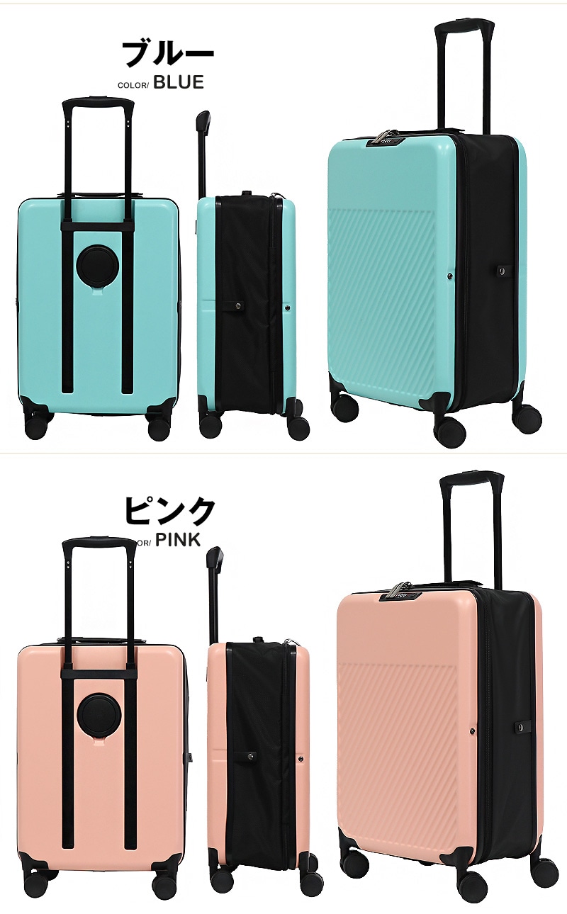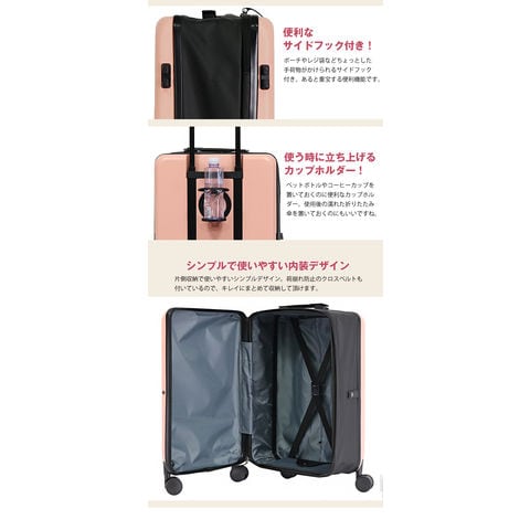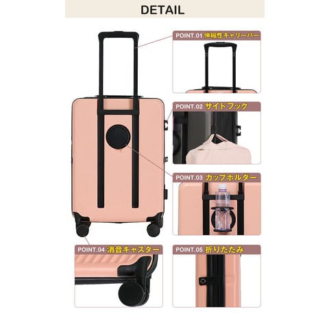 折り畳みスーツケース スーツケース キャリーケース キャリーバッグ 軽量 M サイズ 2?4泊 48L カップホルダー 静音 旅行 ビジネス 出張 修学旅行 国内旅行 ポリカーボネイト ハードケース Transporter 【t03】 ピンク トラベルソムリエ t-m3