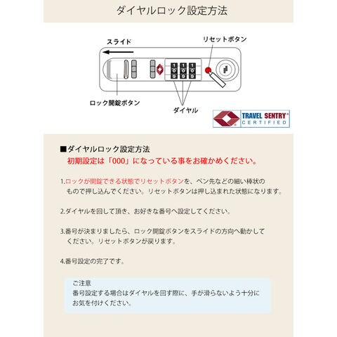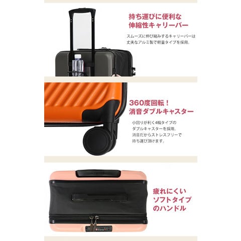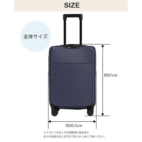| ■スーツケース【機内持ち込み】について 国際線・国内線(100席以上)の機内に持ち込みに適合したサイズとなっております。 LCC・MCCを除く航空会社で機内持ち込みしていただけます。また路線、飛行機の種類により機内に持ち込む事が出来ない場合がございますので、予めご了承願います。 ■キャリーバーで本体を持ち上げないで下さい。 ■キャリーバーには生産時に使用する潤滑油が付着している場合がございます。その場合は拭いてからご使用ください。 ■不整地ではご利用いただけません。 ■商品サイズ・カラーは、企画サイズとなります。 ■掲載の商品画像につきましては、モニターの種類・設定等により、実際の商品とは素材感や色味が異なる見え方をする場合があります。 ■細かなキズや、製造上避けられないシミ・シワなどがある場合があります。 ■商品仕様は、予告無く仕様変更される場合がございます。 ■アウトレットにて販売しております。アウトレットの訳有り品として ・多少の傷や汚れがある ・チャックが少し固い ・縫製が少し甘い ・縫製のラインが少し歪んでいる ・ミシンで縫いすぎて糸をほぐした跡がある ・梱包には再利用箱を利用している ・タグのついていない商品がある ・多少のにおい等(接着剤やクリーニング液)が残っている ・その他ご使用に問題のない物等など といった上記の状態の商品が含まれている場合がございますが、予めご了承願います。 |