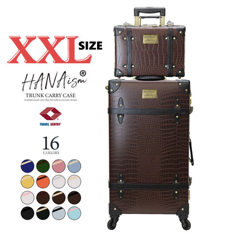 キャリーバッグ XXLサイズ アルミフレーム ミニトランク付き スーツケース キャリーケース レトロ 大型 TSAロック付き 頑丈 出張 修学旅行 海外 国内 旅行用 おしゃれ かわいい HANAism 【NN-SQSET】 12/クロコブラウン トラベルソムリエ t-l4