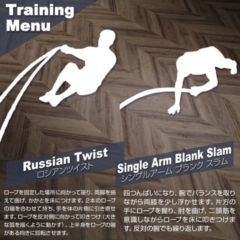 丈夫な柱や木に結び付ければすぐにはじめられる!ロープを持って上下に振るだけ。 全身の筋力強化や体幹、バランス感覚を鍛えることができます。 ラバーコーティング加工によりグリップは握りやすく滑りにくい。 高密度に編み込まれたロープはハードなトレーニングにも耐えられる高耐久性のロープを使用。 柔軟な設計なので束ねることで簡単に運ぶことができます。 【アンカーストラップ】 ポールや柱に取り付けるためのアイテム。 バトルロープをしっかり固定します。 【サイズ】 太さ約50mm×全長約9m 【重さ】 約15.6kg | |