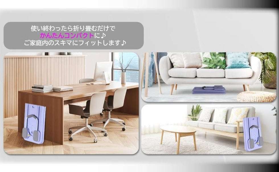 約20mm厚のサポートクッションや約8mm厚の肘サポートパッド、汗吸収フォームハンドルに加えて、使い終わった後は折りたたむだけででコンパクトに収納で省スペース!!
