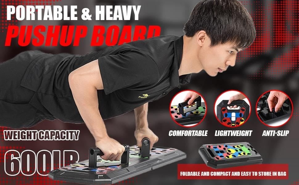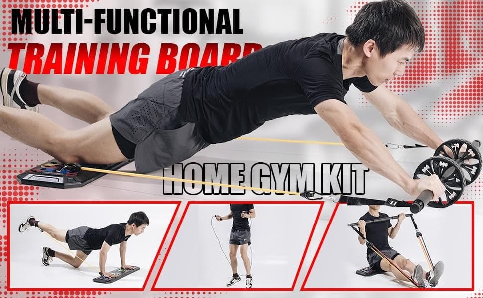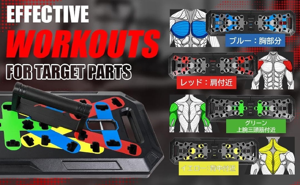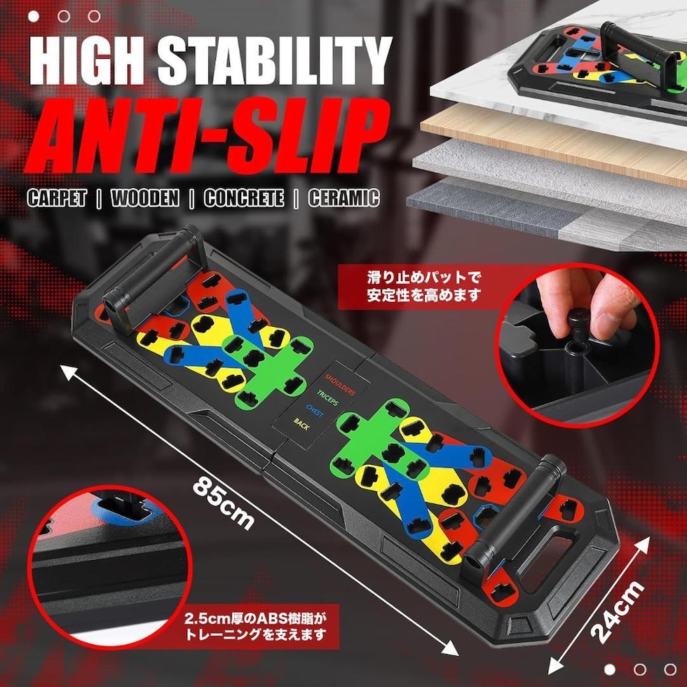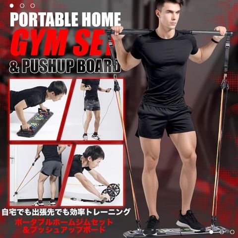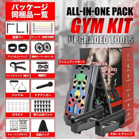 【2025オールインワン】プッシュアップボード 腕立て ホームジム ポータブル オールインワン 自宅 トレーニング 器具 push up bar 筋トレ 腹筋ローラー アブローラー コロコロ レジスタンスバンド 握力グリップ 縄跳び 日本語説明書 《並行輸入品》 (マルチホームジムキット) 【アメリカで爆発的人気!!】折りたたみ式プッシュアップボード、拡張バー、強度3段階のレジスタンスバンド、2つのアンクルストラップ、ドアアンカー、腹筋ローラー、握力グリップ、縄跳び!コンパクトなホームジムとしてほとんどのトレーニングニーズを満たすことが可能! 【お好みのトレーニング強度で】カスタムデザインの独特な外観は、スタイリッシュで効率的で色分けされたエリアに従って適切な筋肉群を鍛えることで、運動効率を80%向上させます!胸筋、上腕三頭筋、肩、背中や下半身、さらに握力を最大限に効果的に鍛えることができ、縄跳びでは有酸素運動も可能です! 【ポータブルホームジム】ジムの大型機器や器具に代わるものとして設計され、創造的なワークアウトコンセプトにまとめられています!どこにでも持ち運べるホームジムで、ご自宅や出張、旅行先でも全身をくまなく鍛えることができ場所を取らず高額なジム費用を節約できます! 【誰でも使えるフィットネスシステム】多目的なポータブルホームフィットネス機器です!プロ仕様のプッシュアップトレーニングを維持しつつ、軽量ながら十分な安定性があります!ご自身のパフォーマンスに応じて強度を選択できます! 【アメリカで大人気】全身トレーニングのオールインワンパッケージ!折りたたみ式マルチプッシュアップボード、拡張バー、3段階レジスタンスバンド、アンクルストラップ、ドアアンカー、腹筋ローラー、握力グリップ、縄跳びを含む多機能セットで、色分けデザインにより胸筋、上腕三頭筋、肩、背中、下半身を効果的に鍛え、持ち運び可能なコンパクトホームジムとして自宅や旅行先でも使用可能、軽量で安定性があります! | |