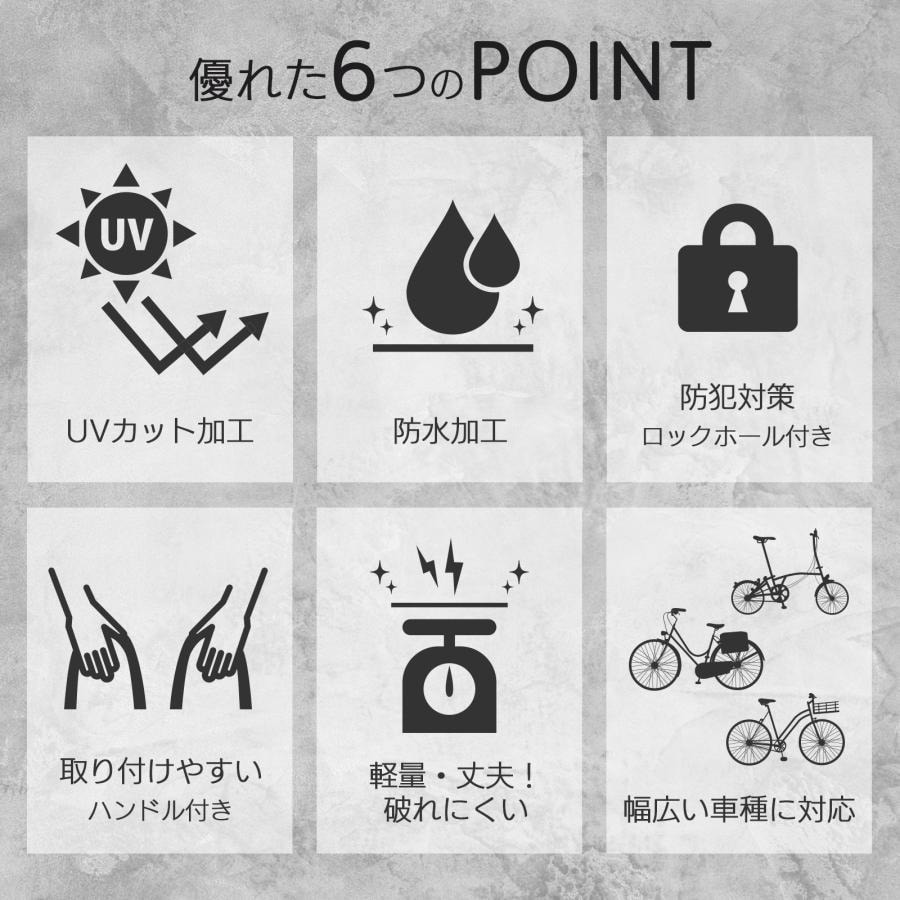 自転車カバー サイクルカバー 丈夫 厚手 撥水 防水カバー UVカット 収納袋付き 子供用 大人用 かぶせるだけ 飛ばない 破れない 【210Dオックス生地採用】 【UVカット加工】 【防水加工】 【ロックホール付き】 【幅広い車種に対応】 大きさ:約170×85×60cm 収納袋:約23×32cm