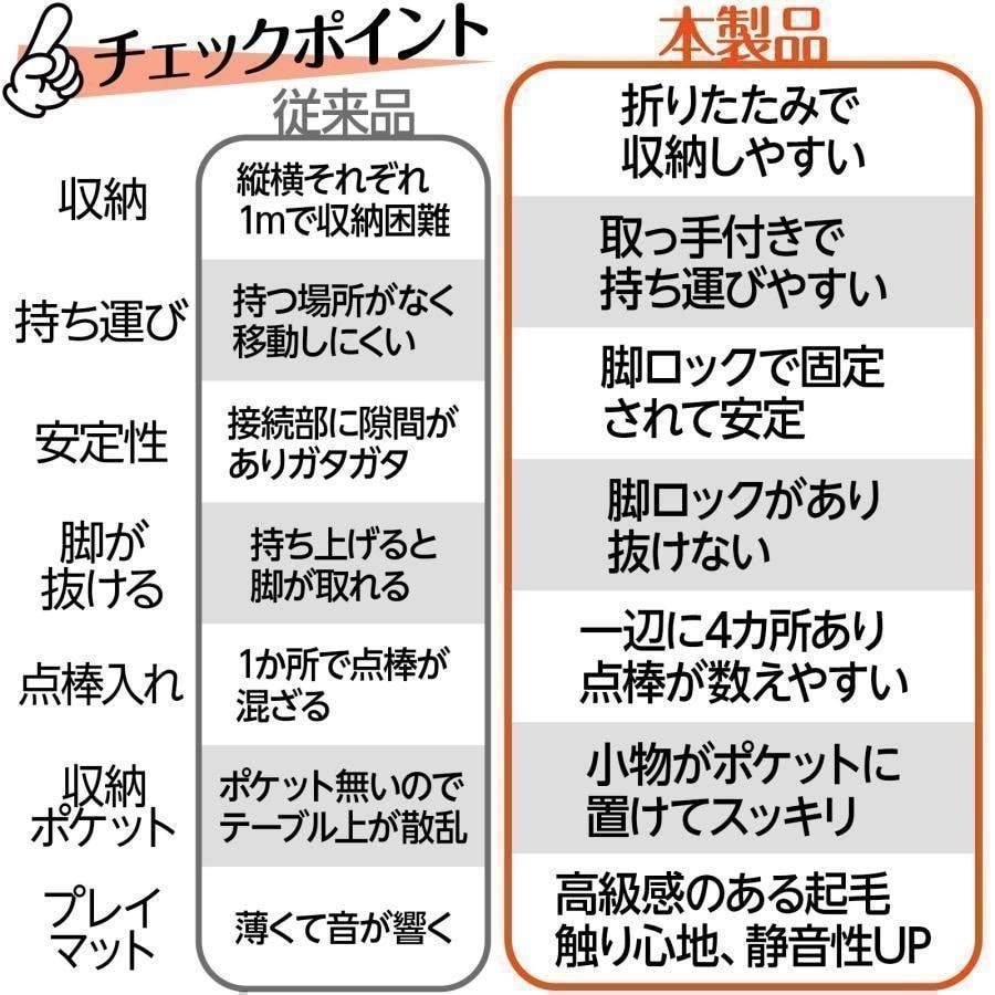 【商品仕様】 麻雀牌 ●点棒:全88枚(65×7×3.5mm) ●東南マーク(48×28×3mm) ※本品は「手打ち麻雀」専用の麻雀牌です。全自動麻雀台には対応しておりません。 椅子に座りながらでも座卓でも、どちらでも遊べる麻雀テーブル! ご自宅のほかにも社内クラブやアウトドア・施設・教室など様々な場所で使用可能。折り畳みでコンパクトに保管・持ち運びが可能! 組み立て・脚の高さ調整・折りたたみ作業は、おひとりでもスムーズに行えます。 脚をしっかりと固定する金具付き。 二つ折りでも溝が気にならない! 雀鳳 麻雀牌 28mm 赤牌 季節牌 手混ぜ 専用ケース付き 点棒 サイコロ 手打ち麻雀卓用 いつでもどこでも仲間と一緒に麻雀で遊ぼう! 【細部までこだわり抜いた日本仕様】 【劣化しにくい高品質】 【収納性抜群の専用袋付き】