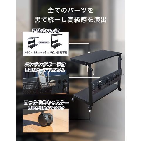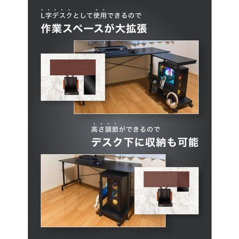 【デスク拡張】作業スペースの拡張としても大活躍。本PCラックをデスク下に置くのではなく、L字デスクやマウステーブルとして利用することも可能。使い方はお客様の数だけあります!ご自身にピッタリの使い方を!5段階式で昇降できるので、高さを調節してご利用ください。