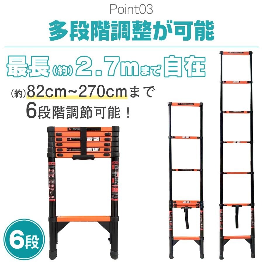 伸縮はしご 最長2.7m はしご 頑丈 鉄製 スチール 伸縮 82cm~270cm 伸縮梯子 伸縮ハシゴ 梯子 伸縮 ハシゴ伸縮 スライド式 送料無料 ※北海道、沖縄県、離島を除く 【ロジ発送】 トラベルソムリエ w-off6