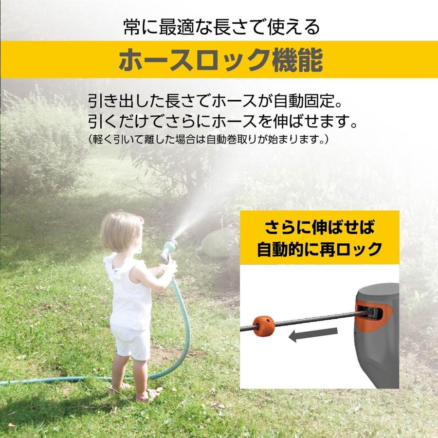 散水ホース 20m 散水ホース25m 屋外散水ホース ホースリール 家庭用散水ホース 洗車ホース 散水ホースおしゃれ 庭ホースレール 壁掛けホース 床置き式ホース 自動巻取りホースレール 散水ホース180度回転 散水ホースカッコイイ ホースレール20m 散水ホース25m 家庭用撒水ホースの最大の特長は、壁に掛けて使用できる点です。 品質も信頼でき、アメリカやドイツなど複数の国で雑誌に掲載された人気の家庭用散水ホースです。