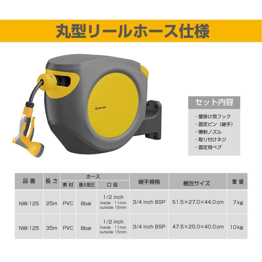 ホース25m 屋外 散水ホース 洗車ホース ホースリール 庭 ホース おしゃれ 壁掛け式&床置き式 ノズル付き 自動巻取り 送料無料 ※北海道、沖縄県、離島を除く 【ロジ発送】トラベルソムリエ w-setu6