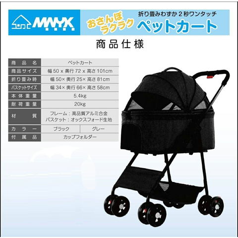 ※カップホルダーは付属しておりませんので、ご承知おきください。 お散歩やショッピング、公園へのお出かけはもちろん、ドッグカフェや動物病院、旅行、車・電車での移動など、あらゆるシーンで活躍します。 ・2WAY分離型ペットバギー ・ワンタッチで簡単折りたたみ ・便利な収納機能 ・屋根は開閉自由、乗せ降ろしも簡単 ・飛び出し防止用リード、専用ペットマット付き 大きさ:約101cm×23.3cm×71.5cm