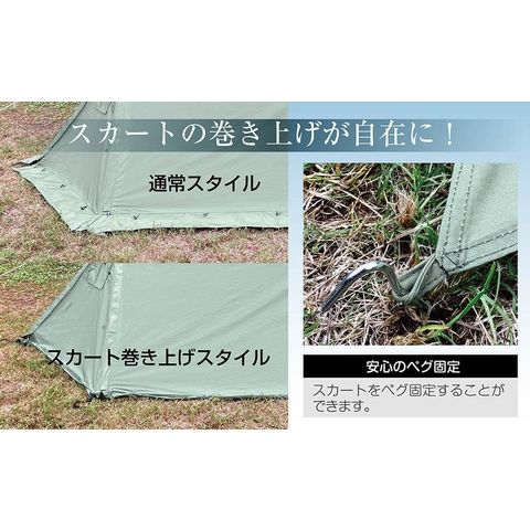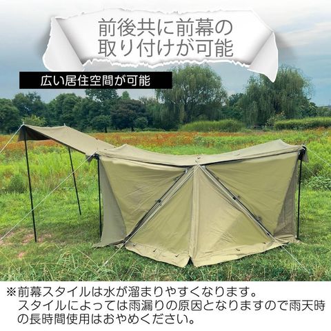 【サイドウォールが自由自在軍幕】テントサイド側の視界を遮りたい時はサイドウォールが大活躍。景色を広げたい時は取り外して収納することもできます。