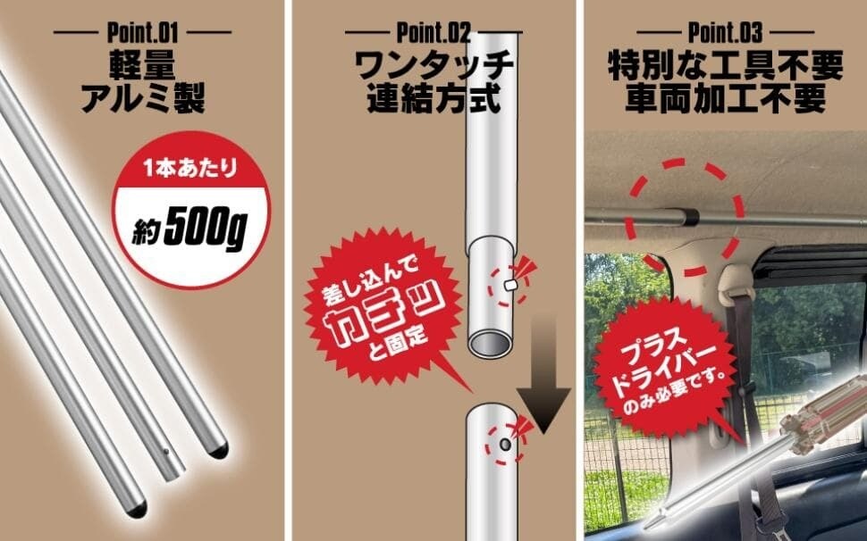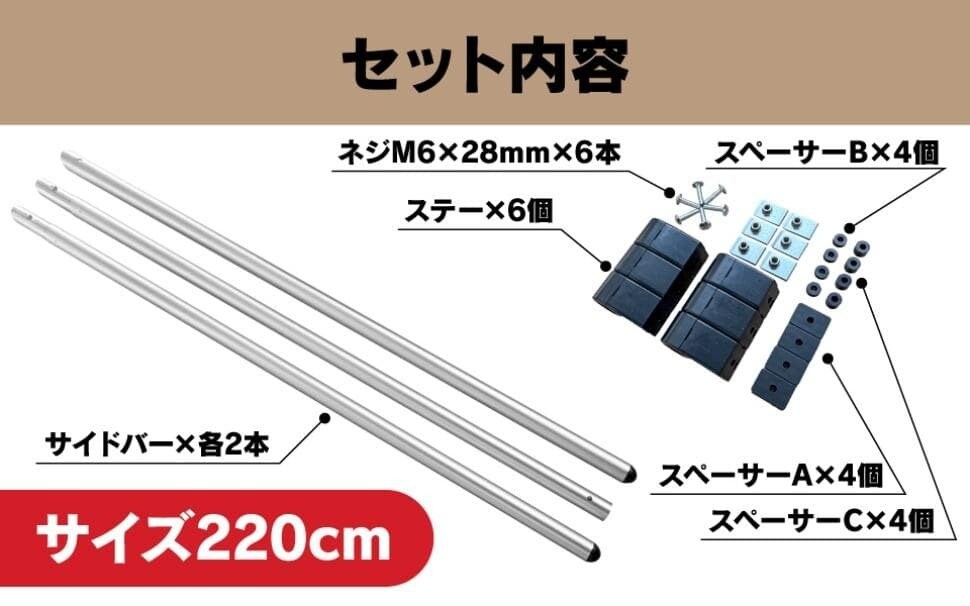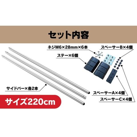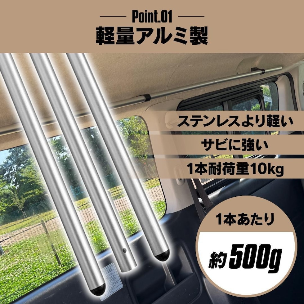 車内サイドバー 収納用サイドバー 収納スペース ハイエース キャラバン 用 左右セット 約220cm 送料無料 ※北海道、沖縄県、離島を除く 【ロジ発送】 トラベルソムリエ w-out7