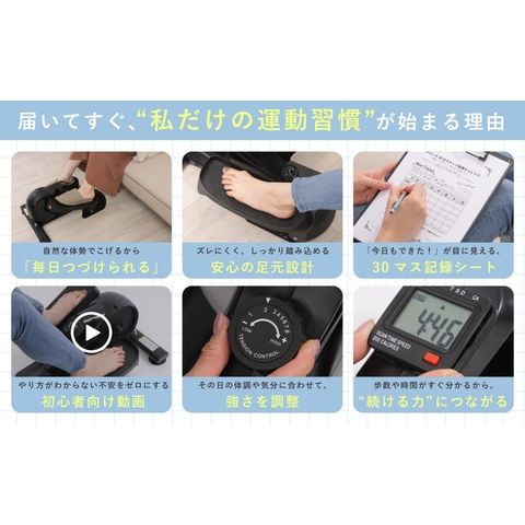 ステッパー 静音 有酸素運動 宅トレ・在宅フィットネス|座り専用 コンパクト 商品の説明 「運動したいけど、続かない」「足腰に負担なく始めたい」 本製品は、椅子に座ったまま足をこぐだけでOKな「座り専用ステッパー」。 【ターゲット】 運動不足を感じる40~70代の方 テレビや読書をしながら健康維持したい方 膝や腰に不安がある方、産後リカバリーにもおすすめ 【特長】 組立不要!箱から出してすぐ使える 静音シリンダーでマンションでも安心 足裏がしっかりフィットする安定ペダル カウンター付きで回数や時間が見える 記録シート付きで“継続する力”がつく設計 【使用シーン】 朝のストレッチ習慣に 夜のテレビ時間に“ながら運動”として 在宅ワーク中の足元エクササイズ リハビリや体力づくりにも 【ご確認ください】 ・この商品は展示用サンプルとして保管していたもので【未使用】ですが、外箱はありません | |