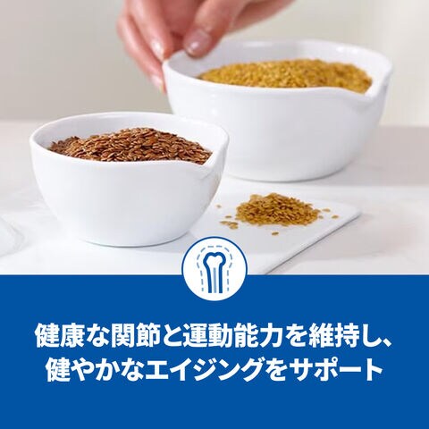 高齢期の小型犬の健康と活発な運動能力をサポートする栄養バランス。理想的なEPA配合レシピで健康を維持し、運動能力を保つ。