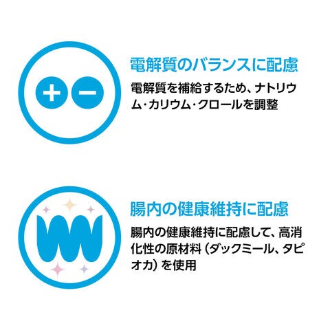 腸内の健康維持に配慮して、高消化性の原材料(ダックミール、タピオカ)を使用しています。