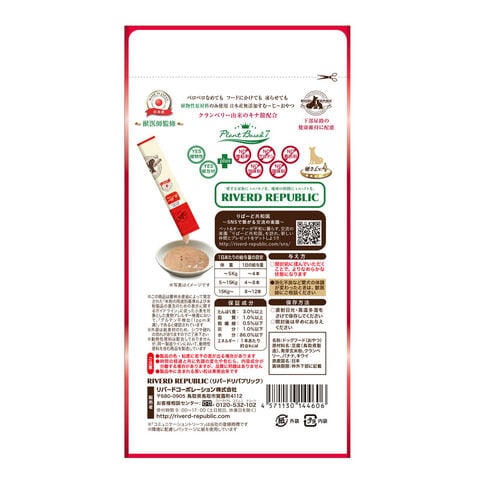 ■成分:たんぱく質3.0%以上、脂質1.0%以上、粗繊維0.5%以下、灰分1.0%以下、水分86.0%以下