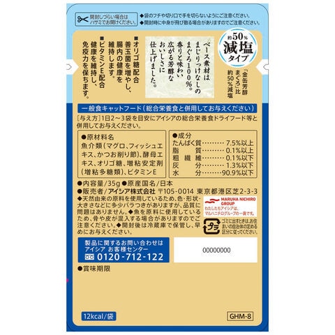 ■素材・材質:魚介類(マグロ、フィッシュエキス、かつお削り節)、酵母エキス、オリゴ糖、増粘安定剤(増粘多糖類)、ビタミンE