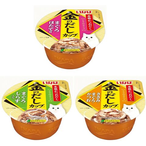 開けやすくて軽いプラスチックカップです。緑茶エキスが腸管内の内容物の臭いを吸収し、フン・尿臭を和らげます。本格かつおだしを加えた、風味豊かなとろみタイプ。かつおやまぐろの丸ごとフレークをベースに愛猫の喜ぶ素材をトッピング。3種類の味が入った便利な24個パックです。タウリン、ビタミンE配合。着色料不使用。タイ産。