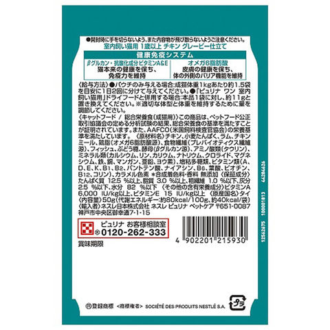 ピュリナワン キャット パウチ 室内飼い猫用 1歳以上 チキン グレービー仕立て 50g