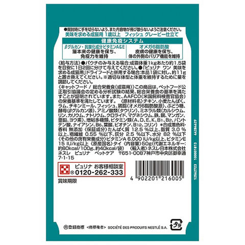 ピュリナワン キャット パウチ 美味を求める成猫用 1歳以上 フィッシュグレービー仕立て 50g