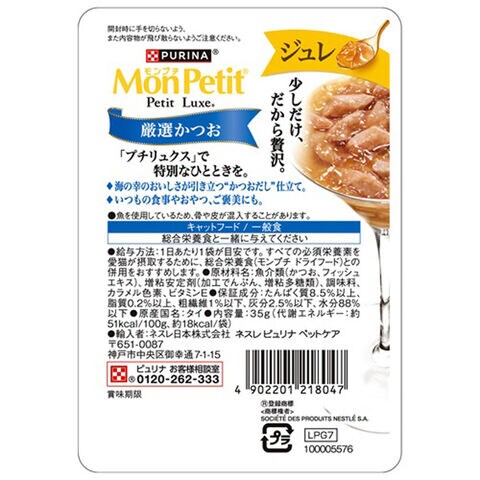 モンプチ プチリュクスパウチ ジュレ 厳選かつお 35g×12袋【まとめ買い】
