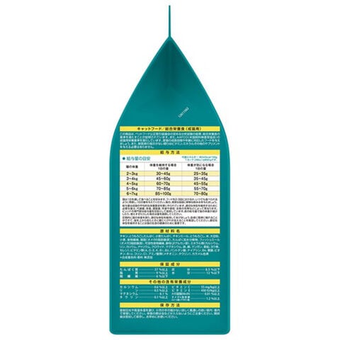 ■素材・材質:チキン、とうもろこしたんぱく、小麦たんぱく、チキンミール、とうもろこし、米、大豆粉、小麦、食物繊維、鶏脂(オメガ6脂肪酸源)、たんぱく加水分解物、フィッシュミール(オメガ3脂肪酸源)、可溶性食物繊維、酵母(βグルカン源)、ミネラル類(カルシウム、リン、カリウム、ナトリウム、クロライド、マグネシウム、鉄、銅、マンガン、亜鉛、ヨウ素、セレン)、ビタミン類(A、D、E、K、B1、B2、パントテン酸、ナイアシン、B6、葉酸、ビオチン、B12、コリン、C)、アミノ酸類(メチオニン、タウリン)、カラメル色素