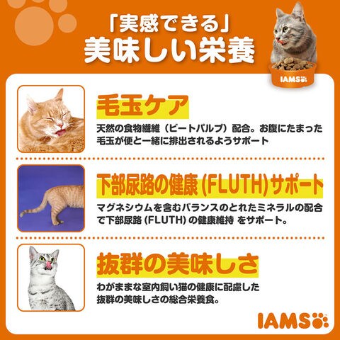 わがままな室内飼い猫の健康に配慮した、抜群の美味しさの総合栄養食。