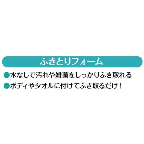 ●泡で出るポンプタイプ。ふきとるだけで洗い流す必要がありません。