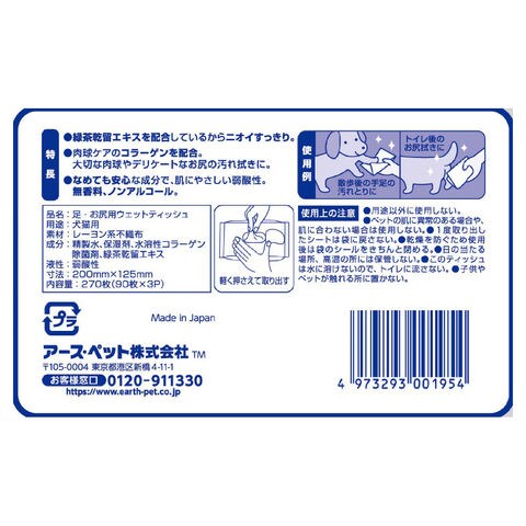 ■使用方法:散歩の後の手足の汚れとりに、トイレ後のお尻拭きに