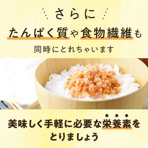 | 商品説明 | 北の海で育まれた鮭を食べやすくほぐしました。大豆たんぱくと食物繊維を加えた商品です。 |