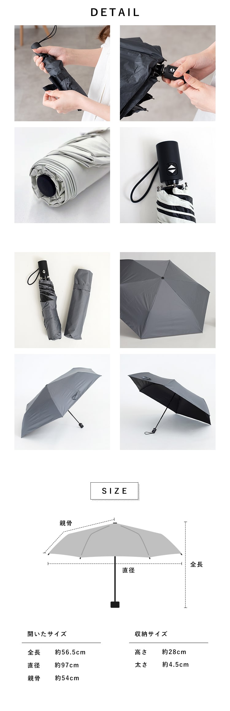 ※本製品は晴雨兼用となっておりますが本来は紫外線防止を目的に開発された生地に撥水加工を施した商品です。激しい雨や長時間雨傘としてのご使用は生地に雨水が染み込む場合がございますので、ご注意下さい。