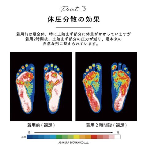 解剖学に基づき成形した凹凸が足にフィットすることで、お椀上に足裏全体を支える構造を作り、足本来の自然な形を引き出します。