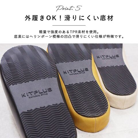 底裏には軽量で強度のあるTPR素材を使用し、ヘリンボーン模様の凹凸で滑りにくい仕様が特徴です。