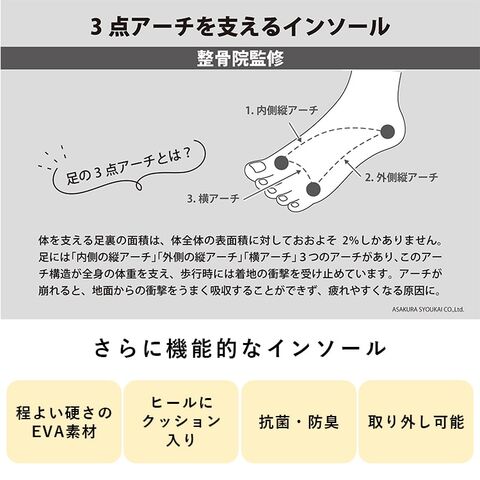 整骨院監修のインソールで1日のおよそ3分の1を過ごすオフィスや職場で、より快適に過ごせる内外兼用サンダル。
