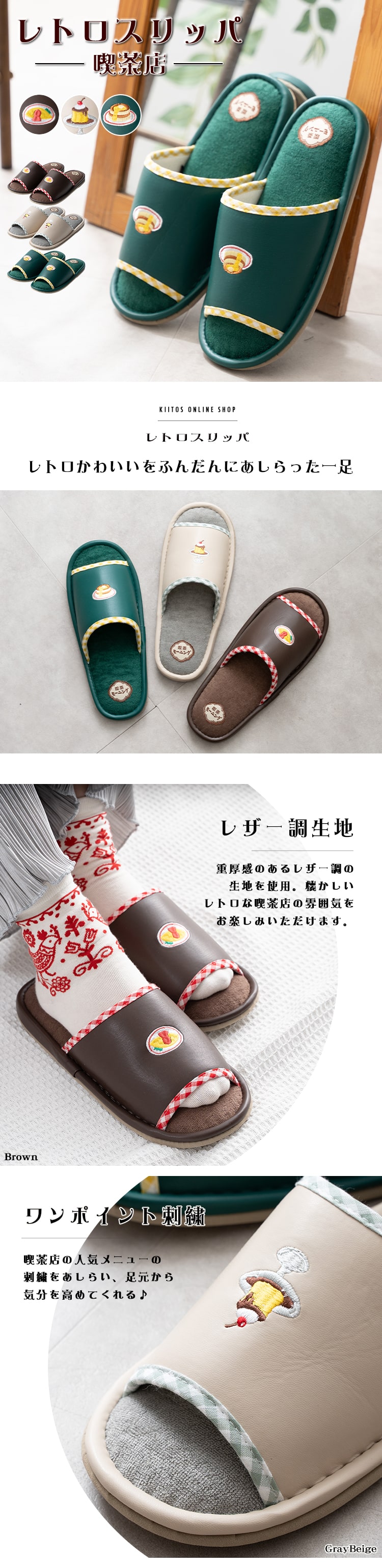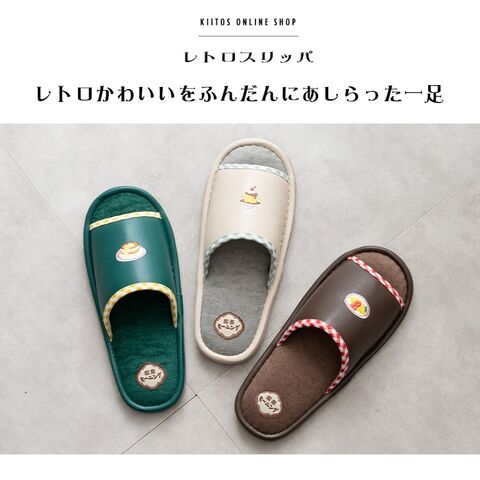 まるで喫茶店にいるような気分になれる、レトロかわいいスリッパで、毎日の足元をちょっと特別に♪