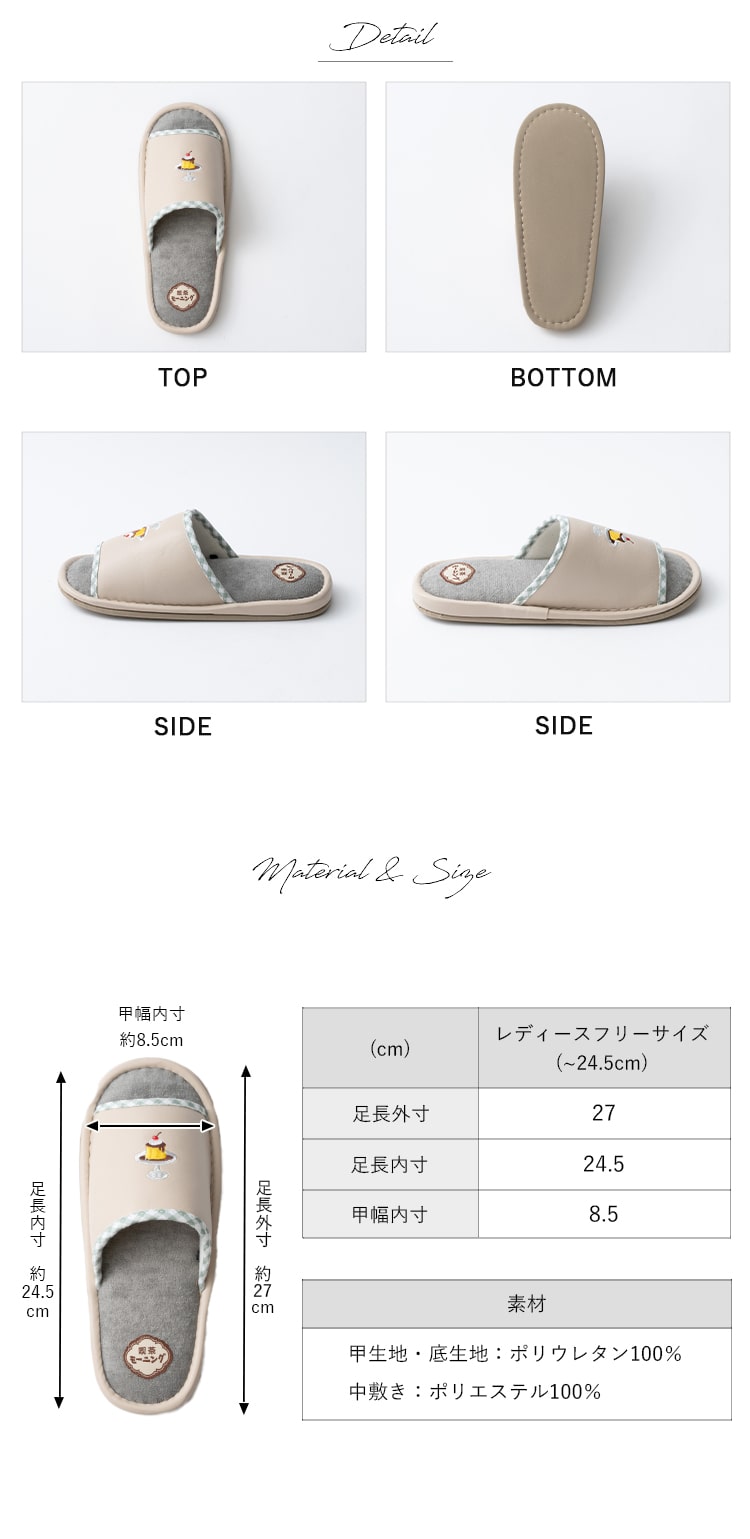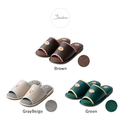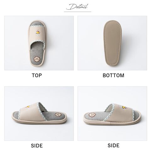 外縫い仕様で前開きタイプのスリッパなので、通気性が良くサッと履けるシンプルなデザイン。