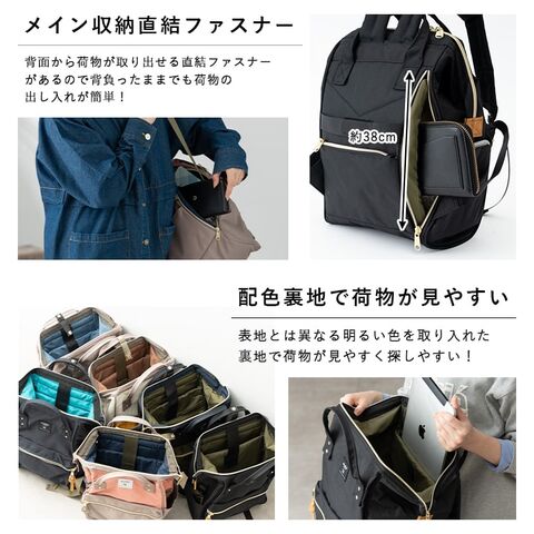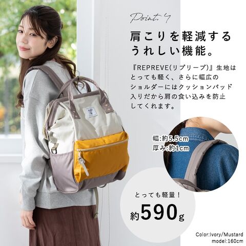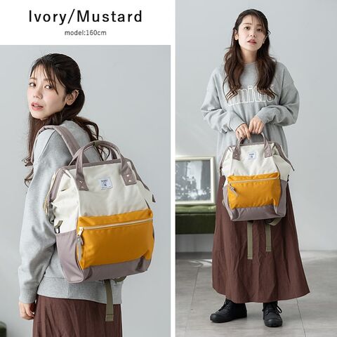 リュック レディース ブランド アネロ 撥水 マザーズバッグ a4 大容量 軽量 通勤 通学 口金 キャリーオン 18l おしゃれ Ivory/Mustard