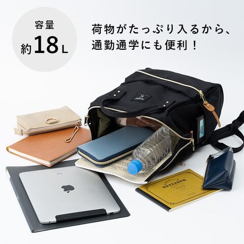 A4サイズ対応で約18Lの大容量だから、通勤通学や、マザーズリュックとしても便利です。