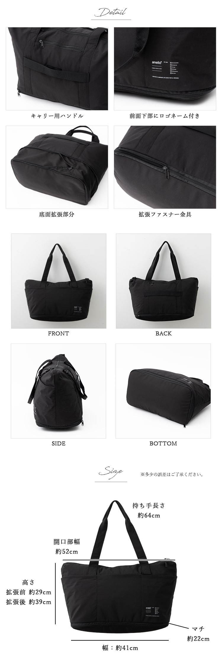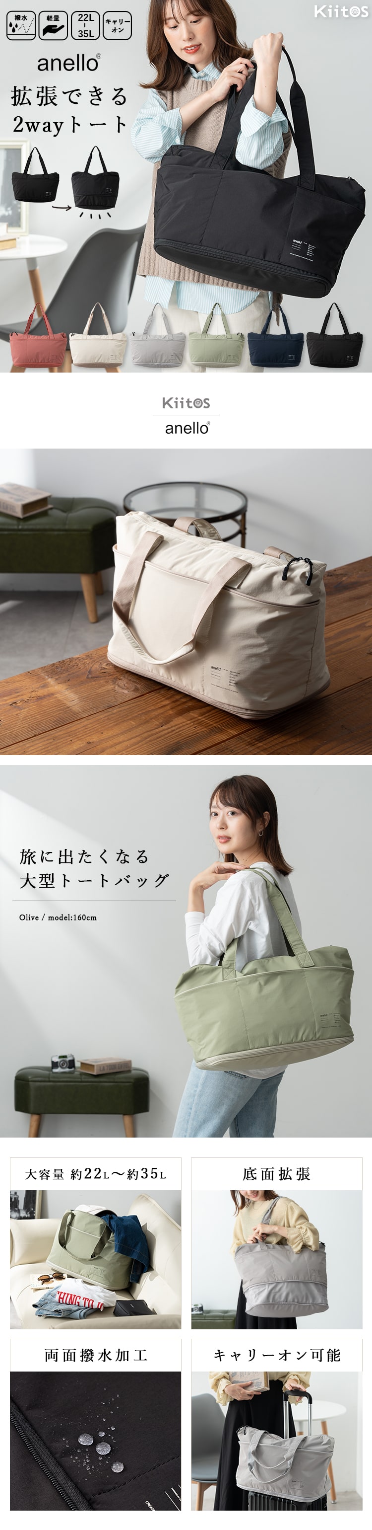 トートバッグ レディース ボストンバッグ anello ブランド a4 大容量 軽量 旅行 拡張 両面撥水 おしゃれ 一泊二日 機内持ち込み Navy