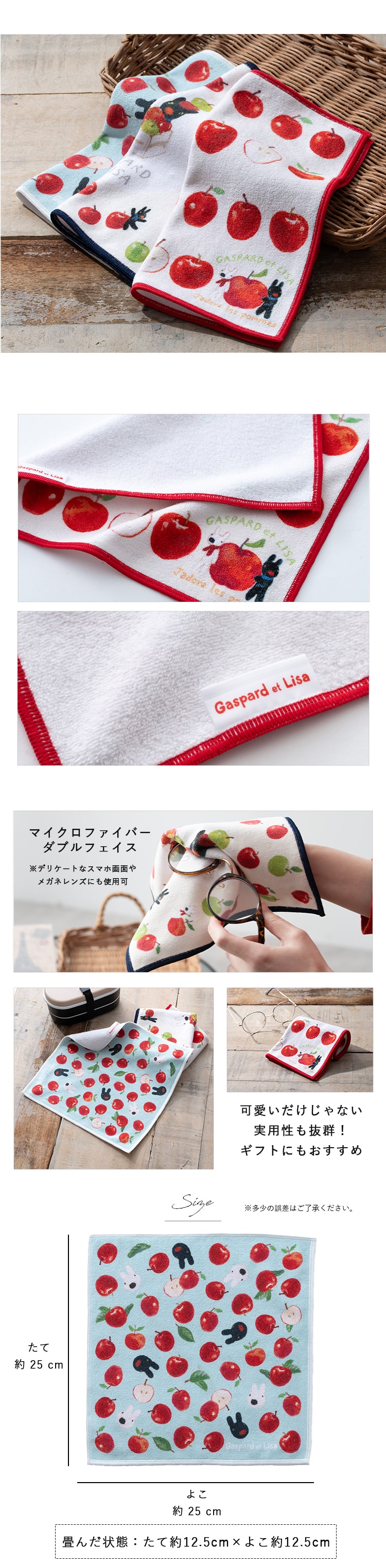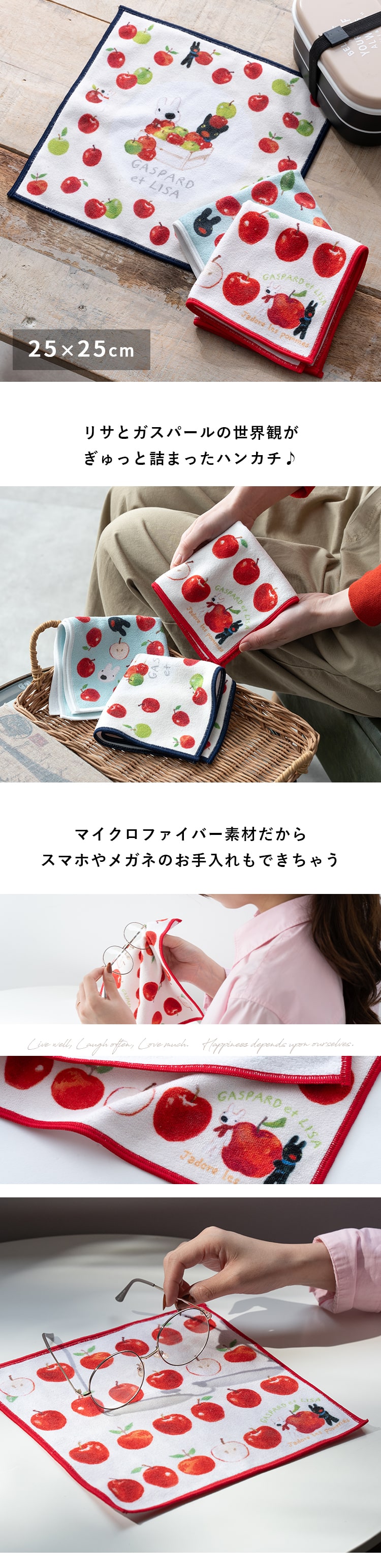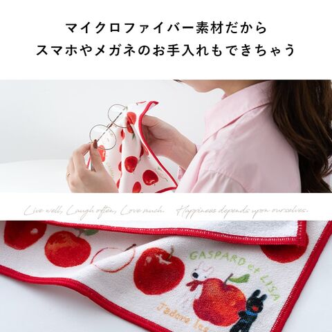 ハンカチ メガネ拭き タオル ブランド リサとガスパール ギフト クリーニングクロス マイクロファイバー スマホ拭き 25cmx25cm White/Red